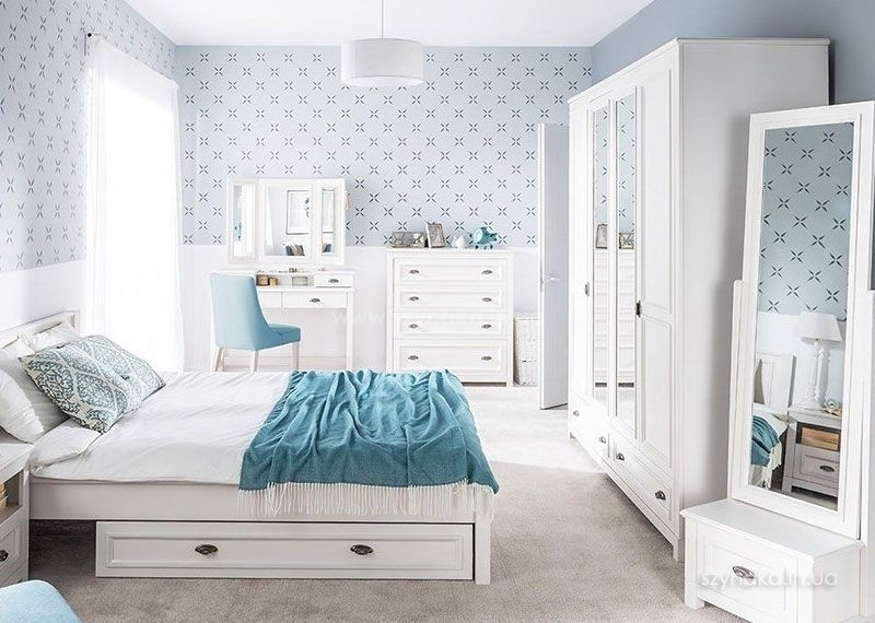 Декор дополнит вместительный платяной шкаф, комод и тумбочки в едином стиле. Любителям современного стиля понравятся простые кровати. Мебель с мягким изголовьем, интересное предложение, которое придает интерьеру более теплый характер. Здесь декор тоже может быть дополнен шкафом и комодом, но уже в более современном стиле.
