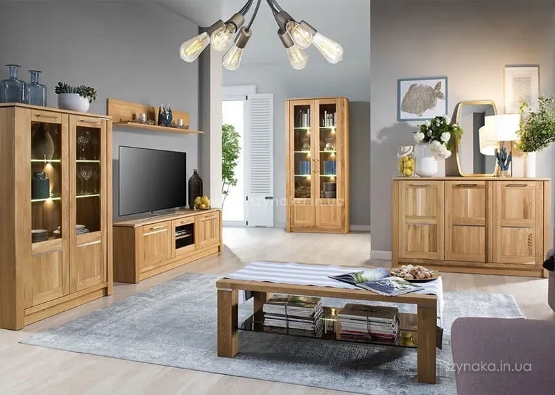 В наше время дизайнерская мебель часто имеет множество остеклений. Они делают помещения просторными и современными. Поэтому в гостиной обязательно должна быть витрина или сервант. Сейчас во многие комплекты входят подвесные шкафы, потому что они практичны. Они не занимают места на полу, и вы легко сможете выставить на них любимые статуэтки, посуду, сувениры или семейные альбомы.