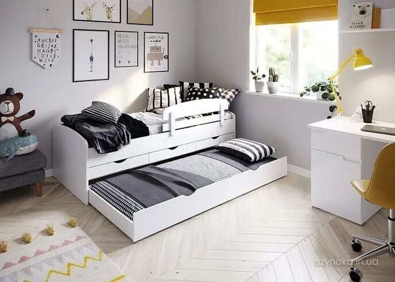 - Трансформация: Обратите внимание на «растущие» (раздвижные) кровати. Они позволяют регулировать длину спального места по мере роста ребенка, что делает такую мебель долгосрочной инвестицией.
