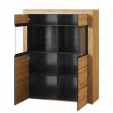 KAMA 15 SZYNAKA Витрина двухдверная модульной системы Кама ШИНАКА. За дверями со вставками из прозрачного закаленного стекла расположены два отделения со стеклянной и тремя деревянными полками в каждом. Задние стенки – рифленые, черного цвета. Витрина дополнительно комплектуется верхней подсветкой 2-L-BC-2-0000-01 или подсветкой полок 3-L-BN-2-0000-01 на выбор. Оснащена системой тихого закрытия дверей.