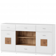 WOOD 46 SZYNAKA Комод двухдверный модульной системы Вуд ШИНАКА с четырьмя выдвижными ящиками и двумя открытыми нишами по середине. За каждой дверью расположено по одной полке. Используются петли и направляющие с функцией тихого закрытия.
