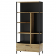 Стеллаж с 4-мя полками и 1 ящиком, классической формы, характеризуется элегантным сочетанием цветов - дуб артизан + черный матовый. Кроме того, задняя стенка витрины также выполнена в матово-черном цвете, придающем мебели оригинальный характер. Стеллаж Lucas 16 может использоваться в гостиных, столовых, а также офисах.