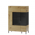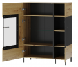 Низкая 2-дверная витрина в стиле лофт / индастриал, классической формы, характеризуется элегантным сочетанием цветов - дуб артизан + черный матовый. Кроме того, задняя стенка витрины также выполнена в матово-черном цвете, придающем мебели оригинальный характер. За дверью расположены 6 полок, 1 из них стеклянная. Визуальный эффект может быть дополнительно подчеркнут светодиодным освещением для стеклянных полок (опция). Витрина Lucas 15 может использоваться в гостиных, столовых, а также офисах.