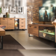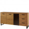 PRATTO 47 SZYNAKA Буфет трехдверный модульной системы Пратто ШИНАКА с тремя выдвижными ящиками. За дверью с прозрачным закаленным стеклом в черной алюминиевой раме расположена стеклянная полка. В остальных отделениях – по одной деревянной полке. Дополнительно буфет комплектуется подсветкой 3-L-BN-1-0000-01. Применяется система тихого закрытия дверей.