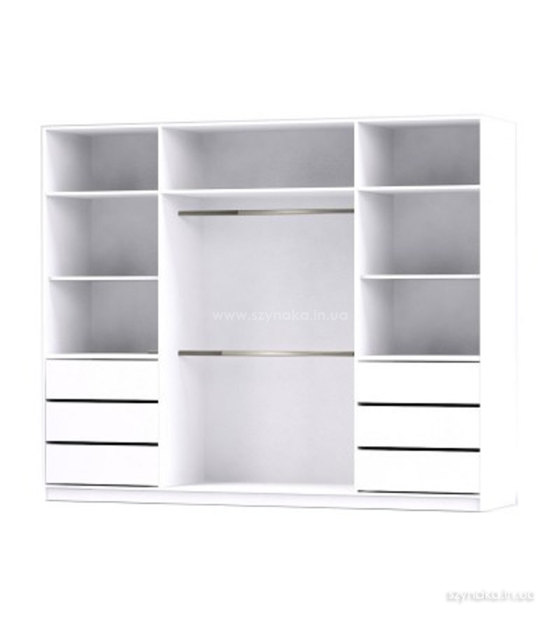 Шкаф-купе Szynaka Glossy вариант сборки 1: корпус шкафа, 2 двери, 4 полки, 1 длинная штанга, 6 ящиков и 1 механизм мягкого закрывания дверей