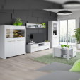 ICE SZYNAKA Гостиная модульной системы Айс ШИНАКА. Для открывания используются оригинальные ручки-выемки. Двери и ящики оснащены системой тихого закрытия. Дополнительно витрины комплектуются подсветкой 3-L-BC-2-0070-03.
