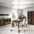 PORTI 70 SZYNAKA Шкаф двухдверный платяной модульной системы Порти ШИНАКА с полкой и штангой для вешалок внутри. Фасад украшен фрезерованной деревянной частью с окантовкой из черного закаленного стекла.