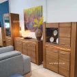 VELVET 48 SZYNAKA Буфет с баром модульной системы Вельвет ШИНАКА, декорированный внешней горизонтальной подсвеченной вставкой. В верхней части – две боковые стеклянные дверцы и одна откидная по центру. В нижней части – три дверцы, за каждой из которых установлено по одной полке. Буфет дополнительно комплектуется подсветкой 2-L-BC-2-0000-01.
