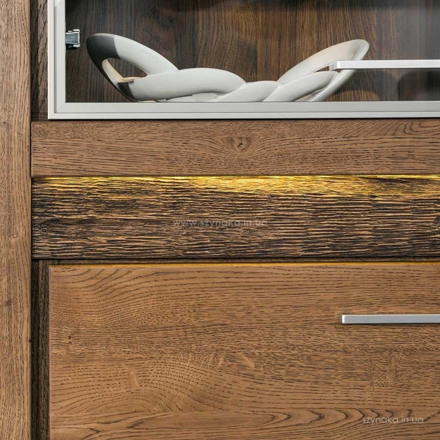 VELVET 15 SZYNAKA Витрина низкая четырехдверная модульной системы Вельвет ШИНАКА со стеклянной полкой за верхней левой дверцей. В остальных отделениях установлено по одной деревянной полке. Витрина декорирована внешней горизонтальной подсвеченной вставкой. Дополнительно комплектуется подсветкой 2-L-BC-1-0000-01 или 3-L-BC-1-0400-02 на выбор.