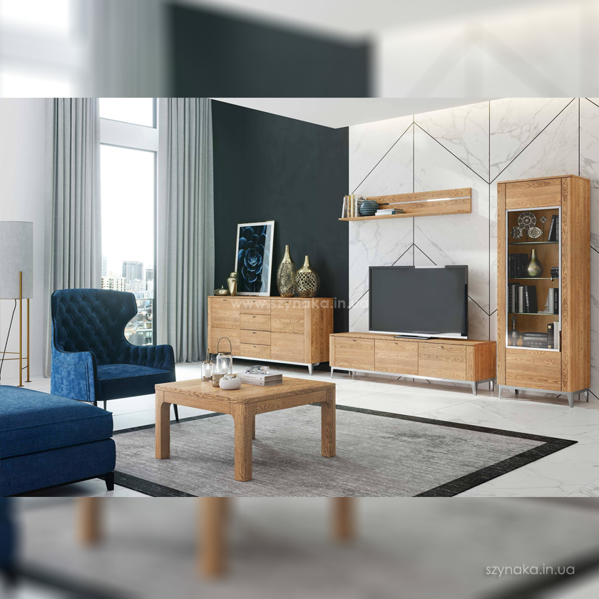 SAVONA 48 SZYNAKA Витрина трех дверная модульной системы ШИНАКА. Декорирована металлическими матовыми вставками. Двери оснащены прозрачным стеклом. Дополнительно витрина комплектуется подсветкой. Применяется система тихого закрытия дверей.